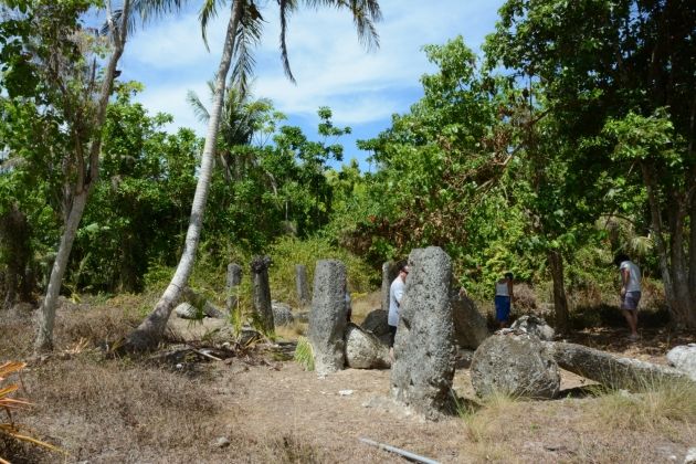 Restos arqueológicos de una vivienda precolonial de los chamorros. Las viviendas se construían sobre grandes pilares de piedra. Foto: Sandra Montón.