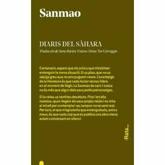 Una nueva editorial, :Rata_, presenta Diarios del Sáhara, de Sanmao, seudónimo de Chen Ping (1943-1991), en traducción al catalán de Sara Rovira y Zang Ziechao, y al castellano de Irene Tor y Zang Jiechao. Se trata de una obra que se publicó originalmente en chino, y que ha tenido un gran éxito en Asia, en varias traducciones. No se trata estrictamente de unos diarios, sino de una serie de relatos sobre la estancia de Sanmao en el Sáhara español. Un texto de gran interés: en primer lugar, porque retrata un territorio colonizado por España, el Sáhara, que básicamente había sido explicado por militares españoles. Sanmao, frente a estos, da una visión del territorio no colonialista, civil, femenina, culta... Todo un contrapunto. Pero, además, este libro tiene un gran interés, porque Sanmao es capaz de relatar con mucho encanto una aventura personal que va mucho más allá de la simple fascinación por una naturaleza impresionante.
