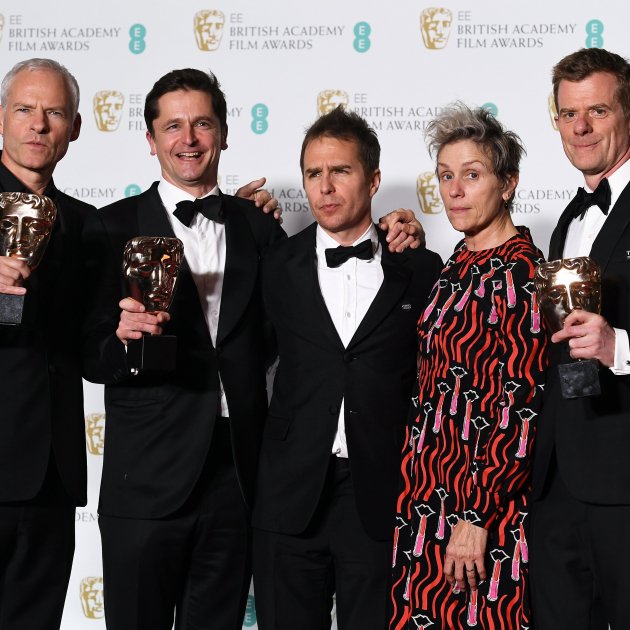 Mejor película, mejor actriz (Frances McDormand), mejor actor secundario (Sam Rockwell), mejor guion original y mejor película británica fueron las cinco categorías en las que se impuso Tres anuncios en las afueras, a la que siguió por número de premios La forma del agua, que se llevó tres, y El instante más oscuro, y Blade Runner 2049, con dos cada uno.