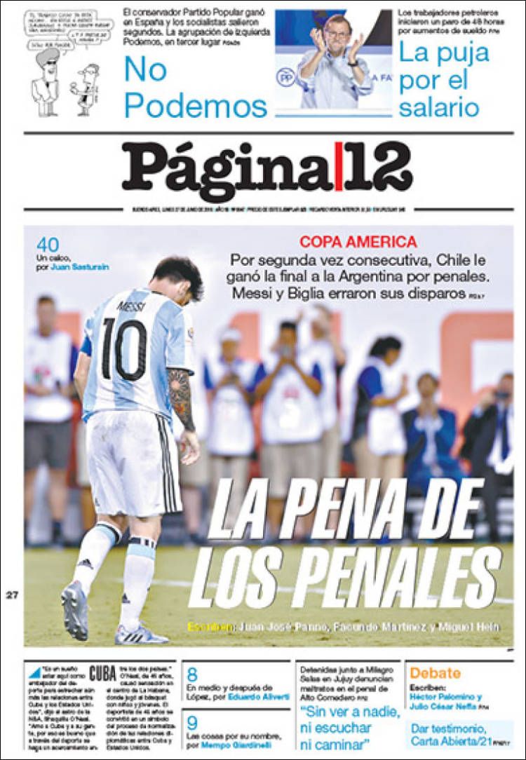 Leo Messi no ha podido llevarse la Copa América. Los penaltis han vuelto a privar a los argentinos de proclamarse reyes. Claudio Bravo ha ganado su segunda copa consecutiva y Chile ha vuelto a repetir el mismo guión del año pasado.