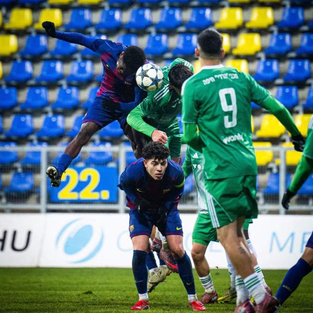 Desde el inicio, el partido ha estado condicionado por el estado del terreno de juego del Gyirmóti Stadion, que ha dificultado la circulación de balón habitual del Barça. Aun así, los blaugrana han sabido imponer su criterio con la posesión y han generado las primeras ocasiones claras. Gistau ha tenido la más evidente en los primeros compases, mientras que un cabezazo de Nil Vicens ha rozado el palo. El Maccabi Haifa, bien ordenado y compacto, ha esperado su momento sin renunciar a castigar cualquier error en la salida de balón culé. El dominio ha encontrado premio al final del primer tiempo. Un centro de Pol Bernabéu, cargado de intención, ha acabado con el balón dentro de la portería tras un intento de despeje desafortunado de Arad, que se ha introducido el esférico en propia puerta. El 1-0 no ha reflejado del todo la superioridad blaugrana, ya que antes del descanso el Barça ha dispuesto de más llegadas para ampliar la ventaja, pero sin precisión en la definición