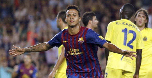 Thiago celebrando el gol marcado en el partido delante del Villarreal / EFE