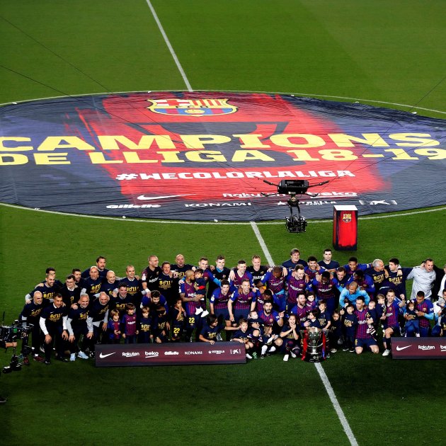 Han sido 83 puntos en 35 jornadas, a falta de tres para el final, que han llevado a los blaugrana a celebrar ante 91.917 espectadores un título que nuevamente deja al Barça liderando España. Algún "campeones, campeones" durante el partido, pero cuando ha sonado el silbato final, la fiesta ha empezado de verdad.