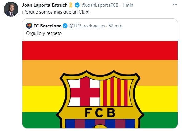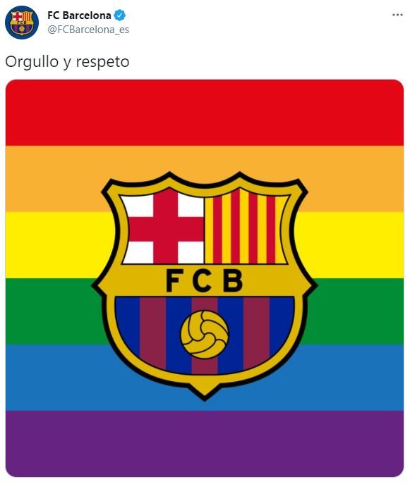 El club blaugrana ha publicado un tuit con el escudo de la entidad y la bandera arcoíris con el texto "orgullo y respeto", como respuesta a una UEFA con la que está enfrentada por ser uno de los líderes de la Superliga Europea.