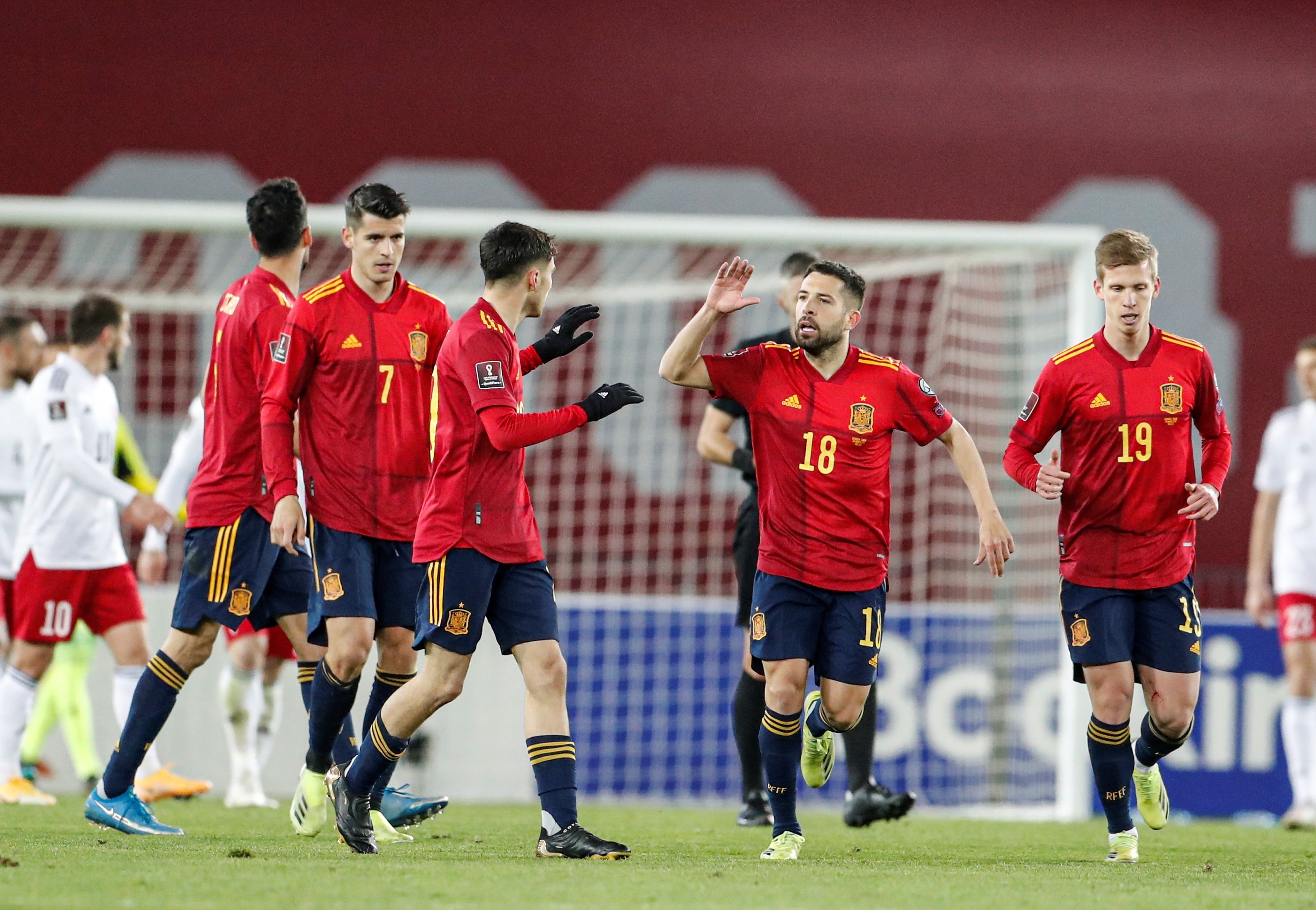 Imagen principal: Los jugadores de la Selección Española celebrando el gol ante Georgia / EFE