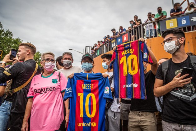 Aficionados del Barça despidiéndose de Leo Messi / Montse Giralt