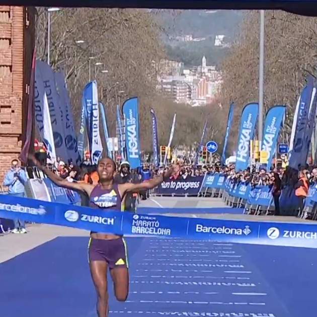 La Zurich Maratón de Barcelona ha vivido este domingo una actuación histórica. La corredora etíope Fotyen Tesfay ha ganado la carrera femenina con un tiempo de 2 horas, 10 minutos y 53 segundos, la segunda mejor marca de todos los tiempos y el mejor registro jamás conseguido por una atleta debutante en la distancia. La corredora de 28 años ha salido con una apuesta muy ambiciosa desde el primer momento. Con un ritmo cercano a los 3 minutos y 8 segundos por kilómetro, ha ido devorando los parciales mientras las proyecciones empezaban a apuntar a una posible plusmarca mundial. En la media maratón ya había pasado en 1:05:03, muy por debajo del ritmo previsto inicialmente.