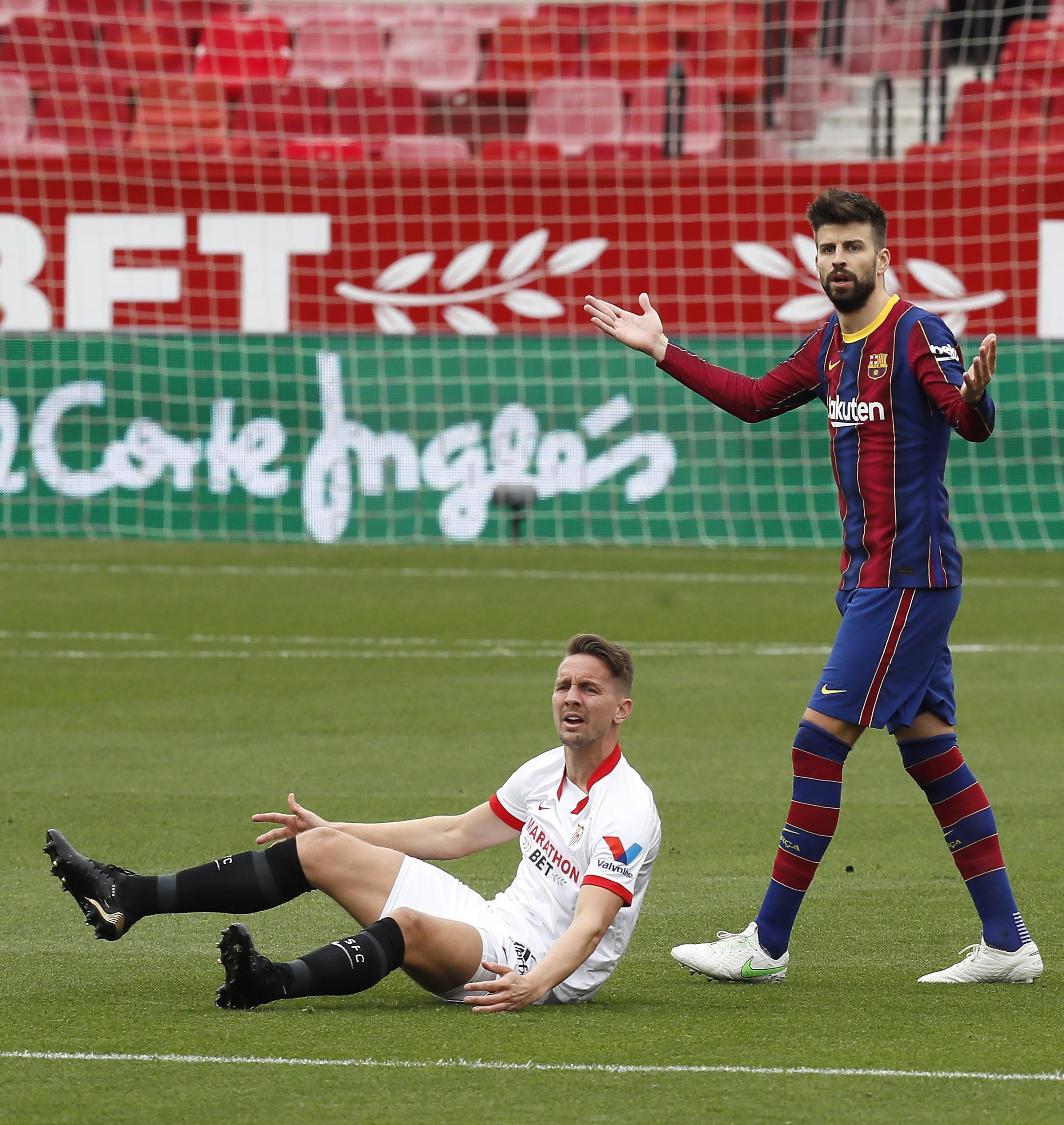 De Jong, con Piqué, en el Sevilla-Barça de la temporada pasada / EFE