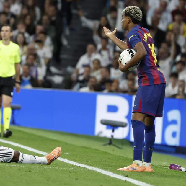 Lamine tiene el pie apoyado en el césped, ganando la posición y es Vinícius el que le pega una patada, falta en ataque y no penalti.pic.twitter.com/Tz8t5leCfM