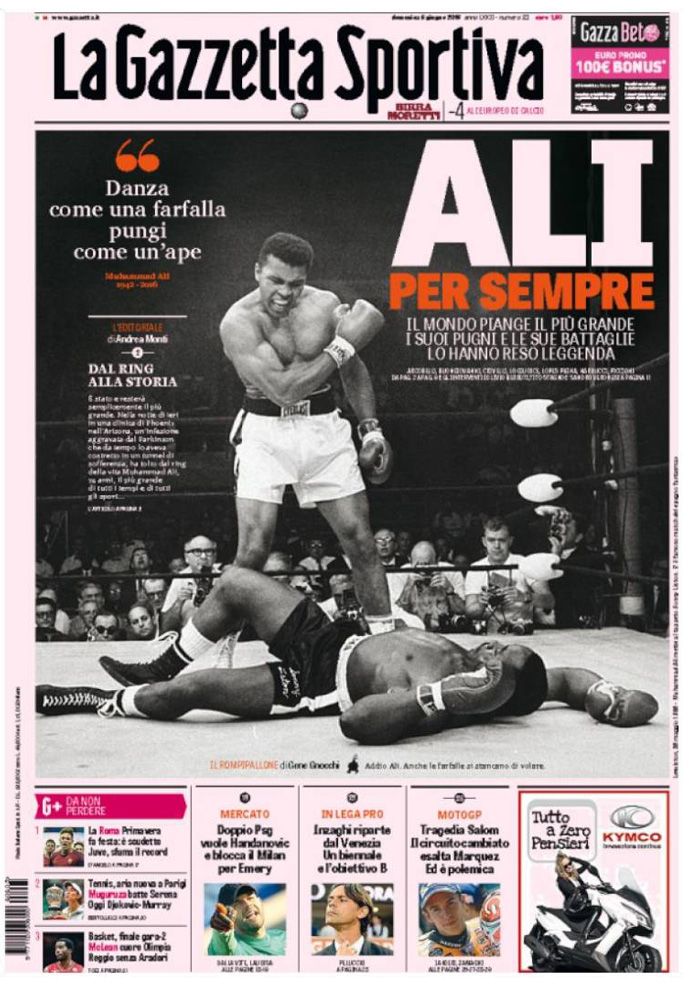 Las portadas que has podido ver hoy no son, en general, nada del otro mundo. El 80% de la prensa ha titulado con "El más grande", "The Greatest", etcétera. Todo muy original.