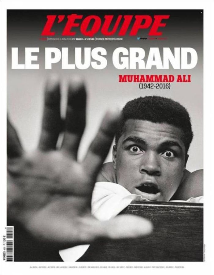 La foto más publicada es la del mítico combate contra Sonny Liston del 25 de mayo de 1965 –se veía venir. YEN ha hecho una excelente antología de las mejores fotos de Alí. El Nacional ha seleccionado las mejores portadas sobre la muerte del púgil: