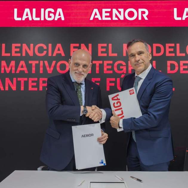 El acuerdo ha sido firmado por el presidente de LALIGA, Javier Tebas, y el CEO de AENOR, Rafael García Meiro, y supone un nuevo paso en la apuesta de LALIGA por “la profesionalización, la mejora continua y la excelencia de las canteras del fútbol profesional español”, según destacaron ambas entidades.