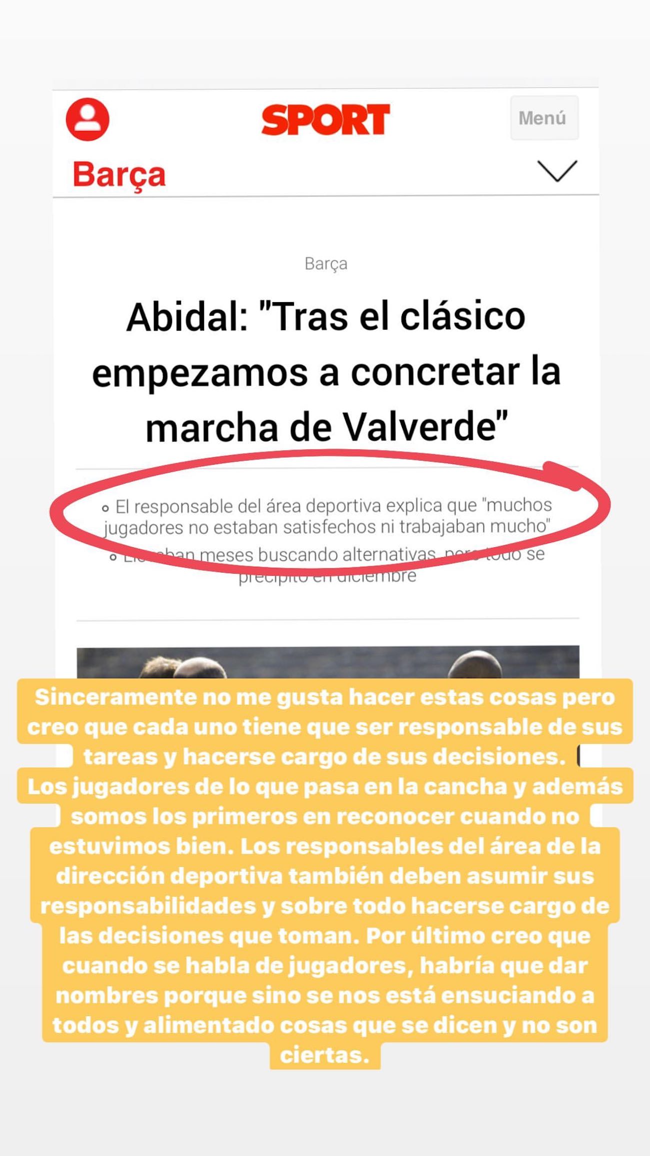 Un mensaje que aparte de Valverde ha ido dirigido al vestuario, que no lo ha pasado por alto. Y Messi, ejerciendo de capitán, ha contestado a Abidal con mucha contundencia a través de las redes sociales: "Sinceramente no me gusta hacer estas cosas pero creo que cada uno tiene que ser responsable de sus tareas y hacerse cargo de sus decisiones. Los jugadores, de lo que pasa en la cancha y además somos los primeros en reconocer cuándo no estuvimos bien. Los responsables del área de la dirección deportiva también deben asumir sus responsabilidades y sobre todo de las decisiones que toman. Por último, creo que cuando se habla de jugadores habría que dar nombres porque si no, se nos está ensuciando a todos y alimentando cosas que se dicen y no son ciertas".