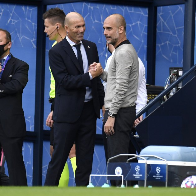 All smiles between Zidane and Guardiola after full-time at the Etihad.#Club2020 pic.twitter.com/6ruRBHJPFa