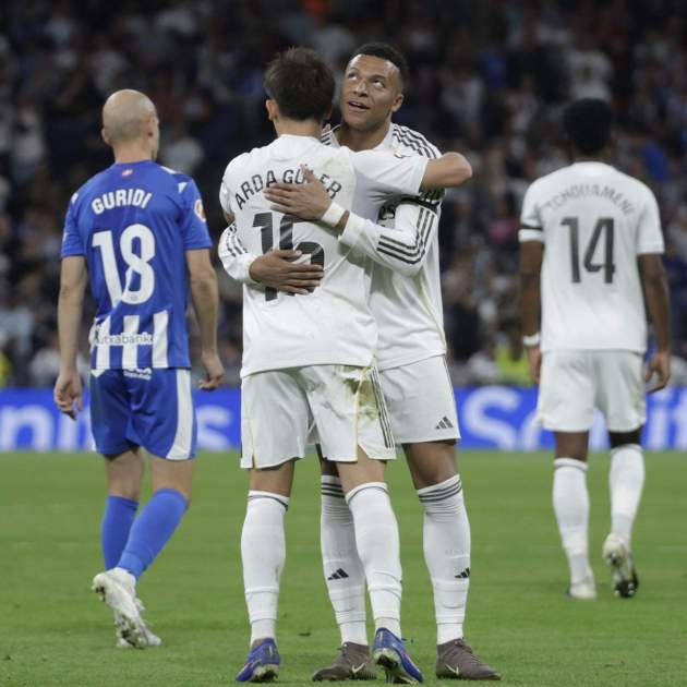 El Real Madrid ha hecho los deberes contra el Alavés (2-1). El conjunto de Álvaro Arbeloa ha cumplido ante un Santiago Bernabéu que ha pasado de la apatía a la hostilidad gracias a los goles de Mbappé y Vinícius, que han neutralizado la diana de Toni Martínez en el tiempo de descuento. Los blancos han acabado sufriendo más de la cuenta, pero se han quedado a seis puntos de un Barça que mañana recibe al Celta de Vigo en el Spotify Camp Nou. Remontar esta distancia parece imposible, pero los blancos quieren creer en el milagro hasta el final.
