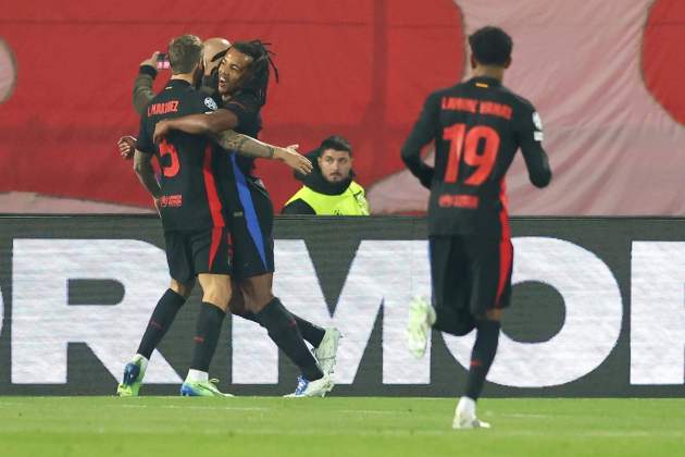 Barça: Iñaki Peña; Kounde, Sergi Domínguez, Iñigo Martínez, Balde; Marc Casadó, Pedri Olmo; Lamine Yamal, Lewandowski, Raphinha.