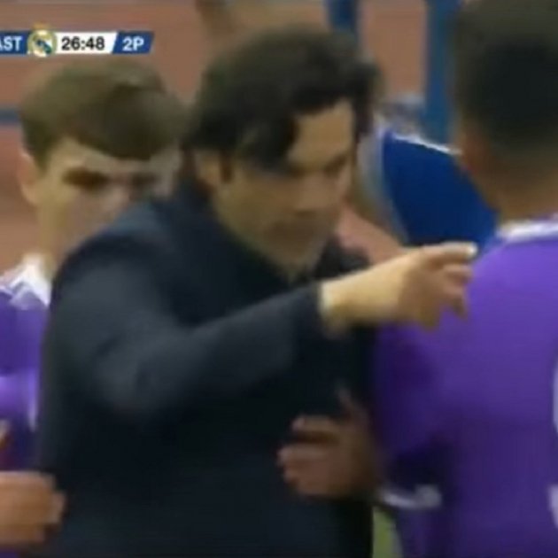 El técnico blanco fue expulsado por protestar, pero la decisión tomada por el juez del partido no fue compartida por Solari. Con una actitud desafiante hizo caso omiso a las indicaciones del árbitro para que se marchara del campo en dirección hacia los vestuarios dando la vuelta por todo el terreno de juego. Solari cogió la directa y cruzó por el medio del campo pese a las consecuentes quejas de los jugadores rivales.