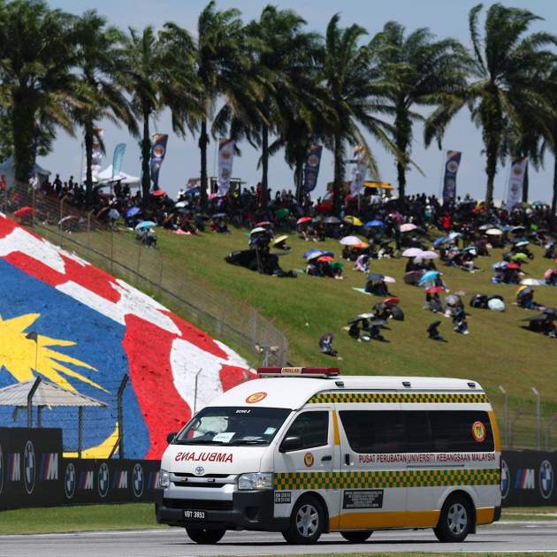 José Antonio Rueda i Noah Dettwiler s'han vist involucrats en un accident. Tots dos pilots estan conscients i són traslladats a un hospital d'alta complexitat a Kuala Lumpur en helicòpter.