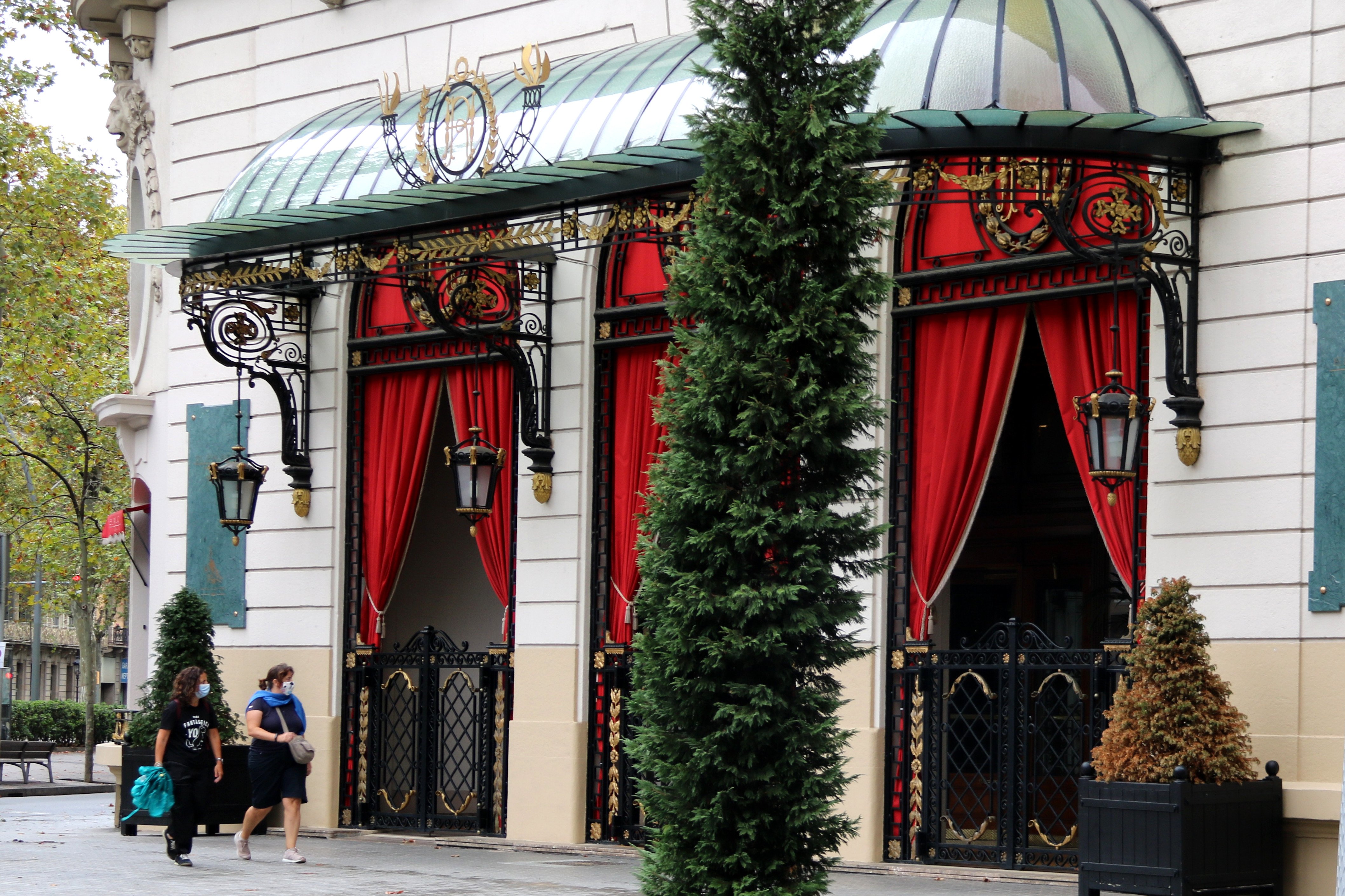 Imagen principal: Plano abierto del Hotel Palace de Barcelona con dos chicas caminando. ACN