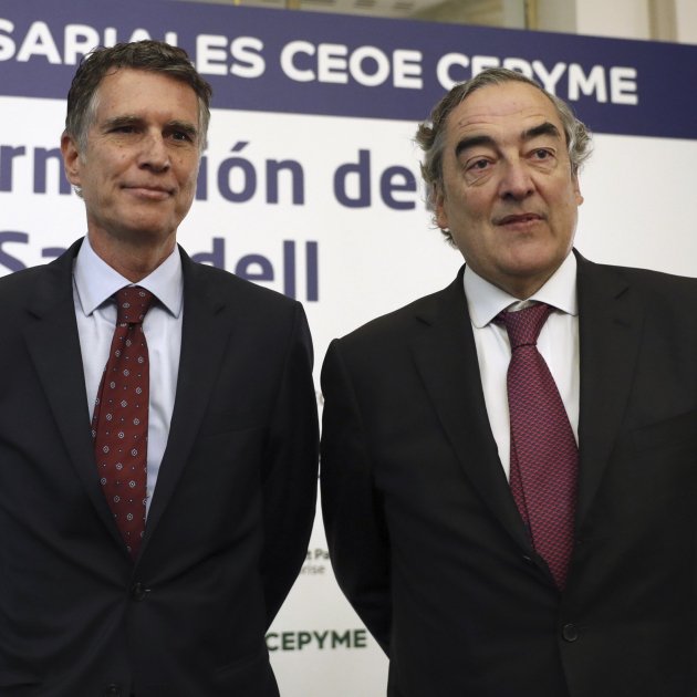 El consejero delegado de Banc Sabadell, Jaume Guardiola, y el presidente de la Confederación Española de Organizaciones empresariales (CEOE), Juan Rosell, han firmado un acuerdo para poner a disposición de las empresas afiliadas a la CEOE una línea de financiación de 10.000 millones de euros con condiciones preferentes.