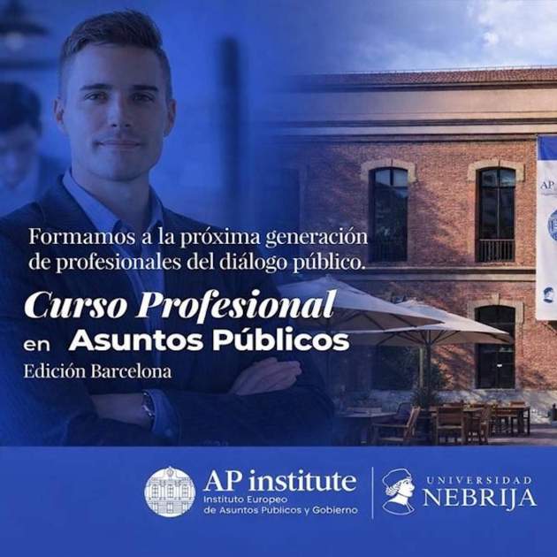 Con esta nueva edición en Barcelona, AP institute | Universidad Nebrija indicó que refuerza su apuesta por la formación especializada en asuntos públicos, contribuyendo a la profesionalización del sector y a la preparación de la próxima generación de profesionales del diálogo público desde una perspectiva ética, transparente y conectada con la realidad institucional. Las inscripciones abiertas con oferta pre-lanzamiento. Toda la información está en 'https://apinstitute.com/formacion/curso-profesional-en-asuntos-publicos/'.