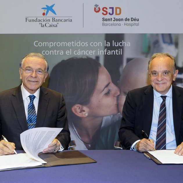 Isidre Fainé, presidente de la Fundació Bancaria "la Caixa", y Manel del Castillo, Director Gerente del Hospital Sant Joan de Déu Barcelona, han firmado hoy una alianza para hacer frente al cáncer infantil, una enfermedad aleatoria e imprevisible que afecta cada año a 1.200 niños y niñas en el estado español y 160.000 en todo el mundo. Aunque es una enfermedad considerada minoritaria y muy desconocida, es devastadora tanto para los niños y jóvenes que la sufren como para sus familias.