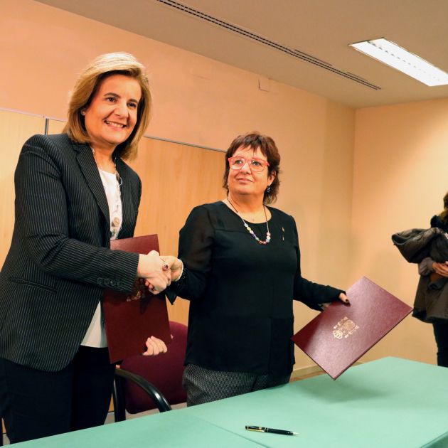 La consellera de Treball, Assumptes Socials i Famílies de la Generalitat, Dolors Bassa, y la ministra de Empleo y Seguridad Social del gobierno español, Fátima Báñez, han firmado este lunes en Barcelona un convenio que establece la creación de la Comisión Interadministrativa del sistema de la Inspección de Trabajo y Seguridad Social. El acuerdo, que el Estado español firmará también mañana con el gobierno del País Vasco, contempla mejorar la colaboración entre administraciones con el fin de hacer frente al fraude y fomentar puestos de trabajo de mejor calidad.