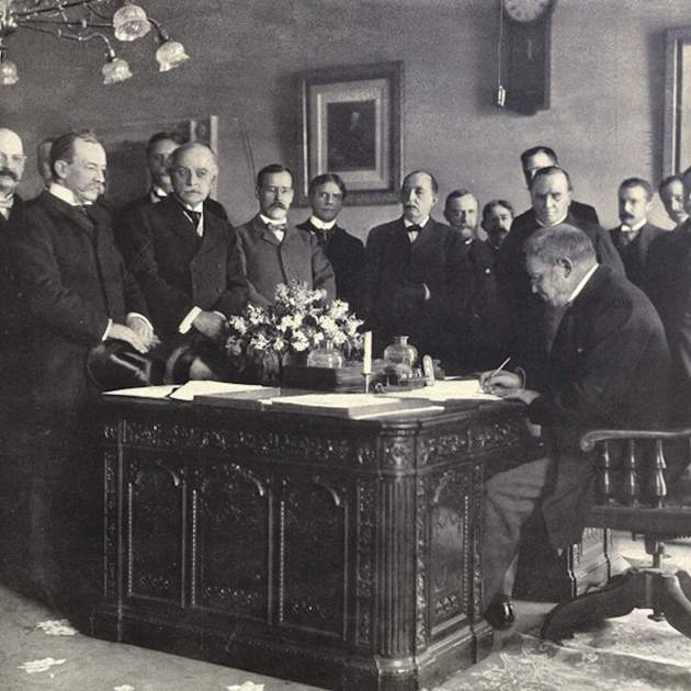 Tal día como hoy del año 1898, hace 127 años, en París, las delegaciones diplomáticas de Madrid y de Washington firmaban el Tratado de París, que ponía fin a la Guerra hispanoamericana (abril, 1898 – julio, 1898). En aquel momento, la jefa de Estado española era la reina regente María Cristina de Habsburgo (viuda del rey Alfonso XII y madre del futuro rey Alfonso XIII), y el primer ministro era Práxedes Mateo Sagasta, líder del Partido Liberal. La guerra tuvo como resultado una humillante derrota española, y, en aquellas negociaciones, la delegación norteamericana presionó para que los españoles les traspasaran el dominio de estos territorios y repatriaran a los miles de prisioneros de guerra españoles que hacía meses que estaban recluidos en campos de concentración en Cuba.