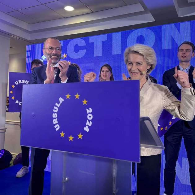 La presidenta de la Comisión Europea y candidata del Partido Popular Europeo (PPE) a revalidar el cargo, la alemana Ursula von der Leyen, ha celebrado este domingo por la noche la victoria de los populares a las elecciones europeas y ha asegurado que construirán una "bastión contra los extremos, de izquierda y de derecha", poniendo en duda una posible alianza con las fuerzas de extrema derecha en la Eurocámara. "Construiremos un bastión contra los extremos, de la izquierda y la derecha", ha afirmado desde Bruselas a la candidata cristianodemócrata. "Es un buen día para el PPE, hemos ganado las elecciones europeas (...) Los votantes han reconocido nuestro liderazgo en los últimos cinco años", ha añadido Von der Leyen, celebrando los 181 de 720 escaños que les otorgan las encuestas, cinco más que en los anteriores comicios.