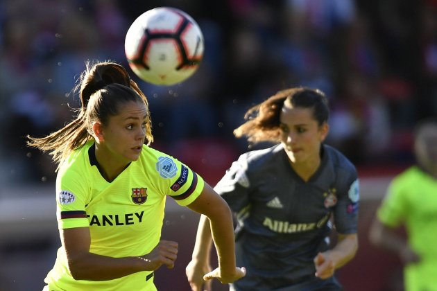 La mejor futbolista del Barça va fuerte en la primera jugada dividida y acaba con un golpe en la cara. Se recupera.