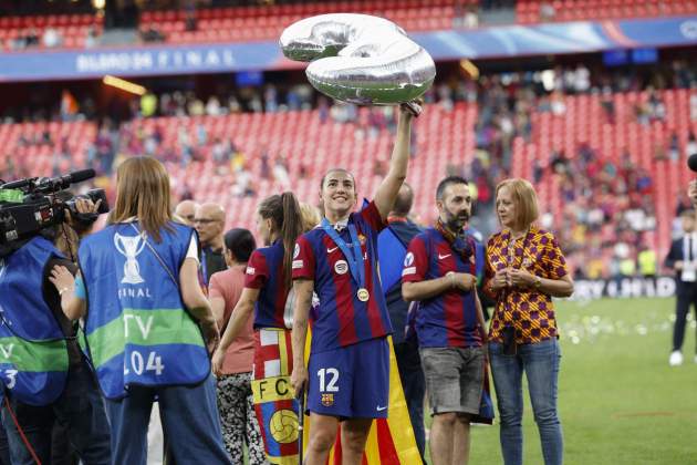 Aitana Bonmatí: "Buenas tardes Barcelona, muy contentas de estar aquí un año más y de volverla a traer para casa, ya la tenemos aquí".
