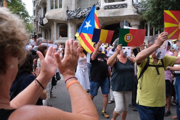 El minuto de silencio ha sido interrumpido por unos gritos que han recordado el testimonio de José Manuel Villarejo: "Las vamos en dar un pequeño susto a los catalanas". "El Estado español es un Estado de asesinos", ha gritado uno de los manifestantes.