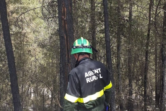 Los Agents Rurals han podido acceder este lunes por primera vez desde el miércoles al punto donde empezó el incendio de Baldomar, en la Noguera. Es una zona boscosa al lado de una finca agrícola entre esta población y el núcleo de la Clua. El jefe de los Agents Rurals en Lleida, Llorens Ricou, ha explicado que todo apunta que el fuego empezó por un rayo de una tormenta seca que hubo el martes. No obstante, en la zona también se había segado y ahora con los drones y las cámaras térmicas se quiere descartar que las causas sean por actividad agrícola.