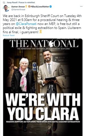 Hoy a las 9.30h, Audiencia Procesal de la eurodiputada Clara Ponsatí en Edimburgo, Escocia.