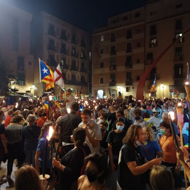 Decenas de personas se han concentrado en el Fossar de les Moreres para iniciar la marcha de antorchas por la independencia, convocada por la Assemblea Nacional Catalana, con motivo de la Diada.