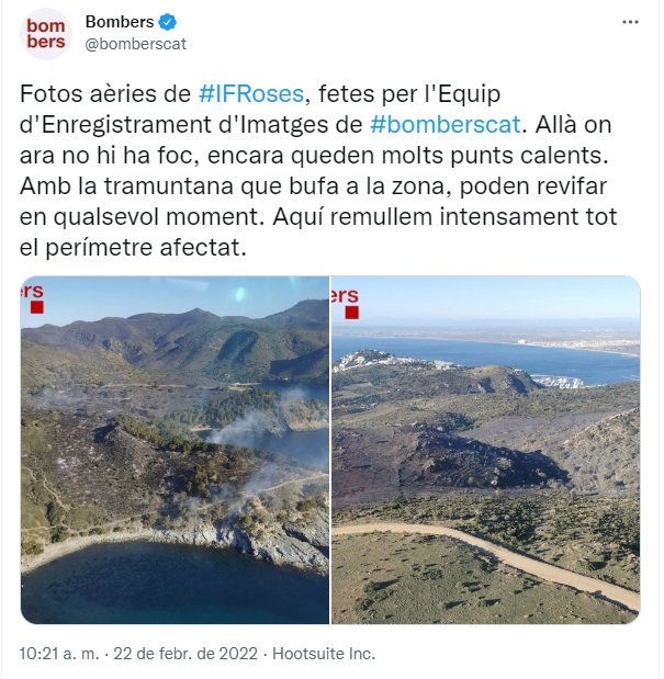 Los Bombers han compartido imágenes del estado actual del incendio de Roses a través de sus redes sociales.