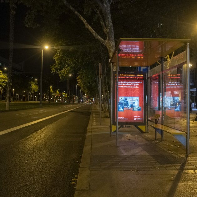 Imagen principal: una parada de autobús en Barcelona durante el toque de queda / Carlos Baglietto