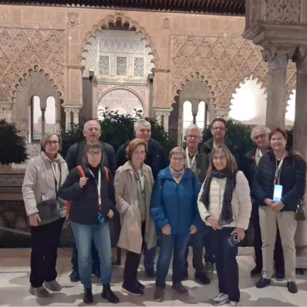 Aunque parezca que no puede ser, nuestra “aventura” sevillana comenzó tres días antes de salir. Renfe, por razones de seguridad —el accidente de Córdoba— cancelaba nuestros billetes de AVE adquiridos con meses de antelación; y, como es habitual en este ente ferroviario español, no nos ofreció ninguna alternativa. Afortunadamente, Viatges Viñolas, la parte organizativa de nuestro proyecto “Experiencias”, lo resolvió con celeridad, sin que esto representara ni un cambio de calendario ni un sobrecoste económico para nuestros “aventureros”. El día previsto volábamos a Sevilla e iniciábamos nuestra “aventura”. Incluso, ganamos, porque dispusimos de unas horas extras por la diferencia entre el tiempo de viaje en tren y en avión y que empleamos para conocer “San Pablo de los Catalanes”, el barrio medieval sevillano que había sido poblado por catalanes.