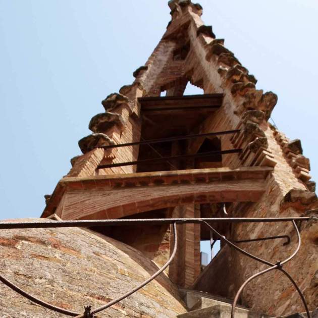 El templo del Sagrat Cor de Vistabella destaca por la estructura de arcos parabólicos que recuerda las formas orgánicas de Gaudí, así como por la torre que fusiona la cúpula y el campanario en una sola aguja. El trabajo del hierro forjado en las barandillas, las vidrieras llenas de ángeles y la policromía interior dan una personalidad especial a la pequeña iglesia. Incluso el altar, las lámparas y toda la ornamentación fueron diseñados por Jujol, que dejó su inscripción personal en un rincón del altillo: “Domini dilexi decorem domus tua” (“Señor: amé la decoración de tu casa”).