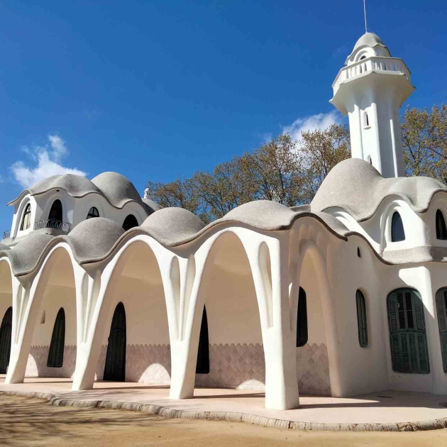 La combinación de su sinuoso tejado con bóvedas catalanas de ladrillo plano con los arcos catenarios inspirados en la obra de Gaudí crea un cuerpo principal del edificio que podría ser un escenario de ciencia ficción. Si te abstraes de lo que hay alrededor, cuando la observas sientes algo parecido a cuando miras hacia arriba dentro de la Sagrada Familia, que si te dicen que estás en un viaje interestelar hacia Alfa Centauri en una nave alienígena, te lo crees.