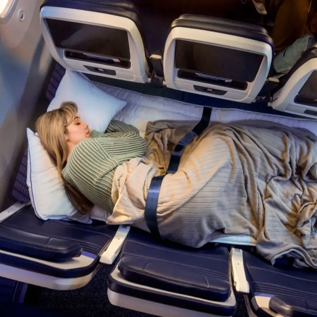 La propuesta es sencilla pero ambiciosa. En lugar de los tres asientos tradicionales, los pasajeros podrán reservar toda la fila y transformarla en un espacio plano gracias a reposapiés elevables. Además, se añaden colchón, mantas y cojines, lo que acerca la experiencia a la de una clase superior, pero sin asumir el coste de un billete business.