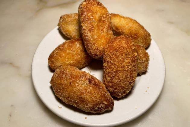 Otro aspecto importante es la forma, que tiene que ser uniforme y sin fisuras. Tiene que haber pan rallado por toda la croqueta para evitar que se pueda escapar el relleno una vez en la sartén. Hay tres maneras para hacerlo: con dos cucharas, con un dispensador de helado o en manga pastelera, poniendo la masa en caliente y después haciéndola deslizar sobre una bandeja con un poco de harina. Tienen que ser todas de tamaños similares y si las tienes que congelar, mejor que sean pequeñas.