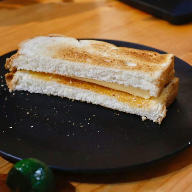 Según explica el creador en su vídeo, el proceso comienza con rebanadas de pan de molde blanco, similares a las que se utilizan en el popular sando japonés. Las rebanadas se introducen en una sartén con aceite caliente y se fríen durante aproximadamente 20 segundos por cada lado. No hace falta mucho tiempo: el objetivo es dorar ligeramente el exterior sin que el pan llegue a absorber demasiado aceite.