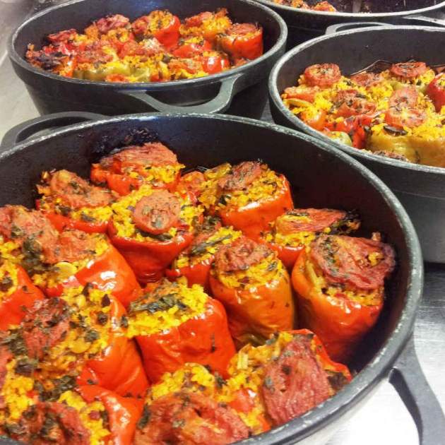 Con este relleno se llenan los pimientos sin apretar demasiado y se cierran con una rodaja de tomate salado. Se cubren con papel humedecido y se hornean unas dos horas, hasta comprobar que el pimiento está blando. El resultado es un plato potente, aromático y perfecto para disfrutar mejor al día siguiente, cuando todos los sabores se abrazan, como solo ocurre en la cocina tradicional valenciana.