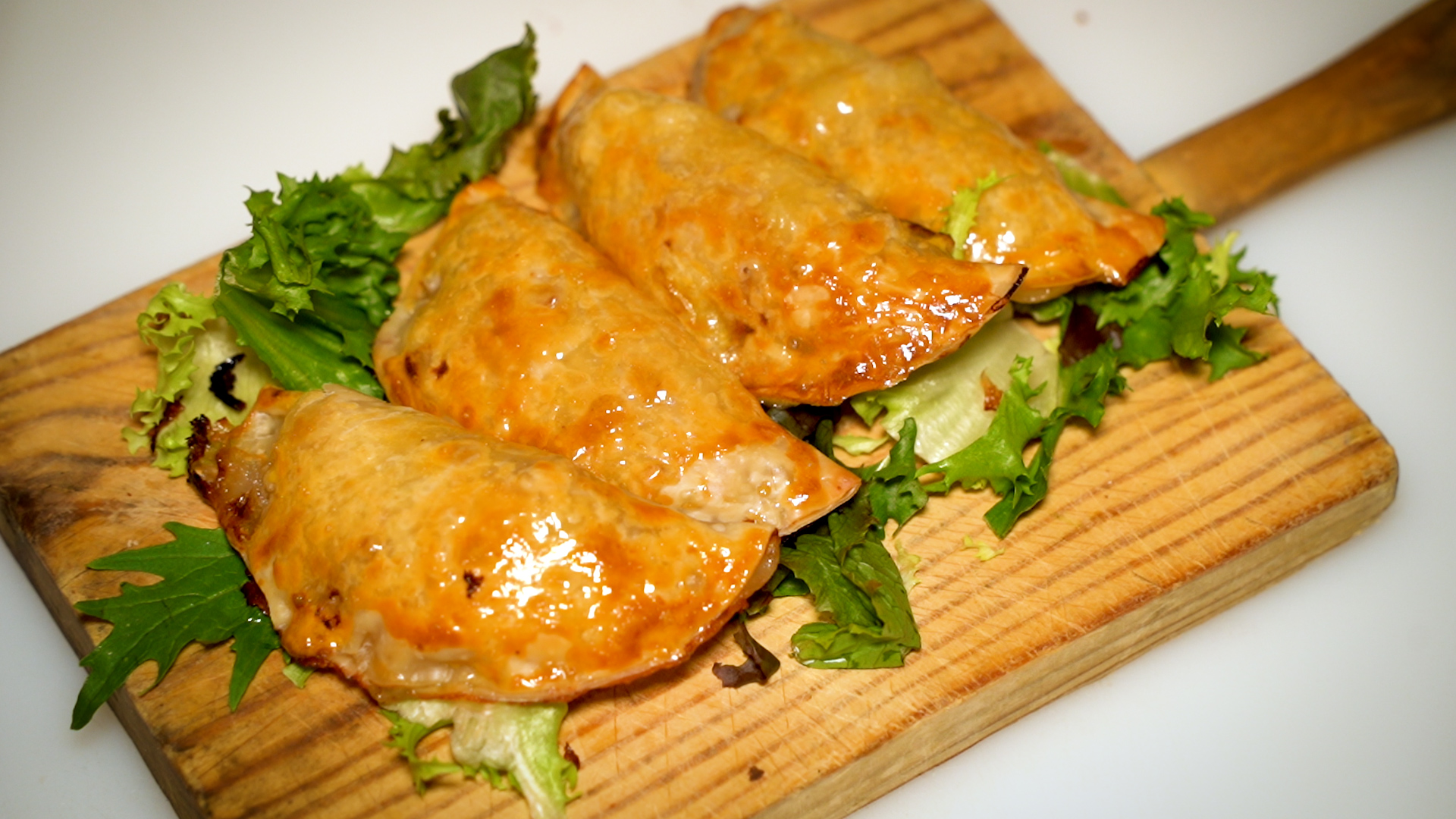 Pelamos y cortamos la manzana a dados pequeños. Las rociamos con un chorro de limón. Lo ponemos un par de minutos en el microondas. Reservamos la manzana cocida. Picamos unas nueces, las mezclamos con la manzana. También añadimos unas hojas de tomillo fresco. Añadimos el queso gorgonzola cortado de cualquier manera. Mezclamos. Rellenamos las obleas con la mezcla y las cerramos con la ayuda de un tenedor haciendo una media luna. Marcamos la valla con las horcas del tenedor. Batimos el huevo para pintar las obleas con un pincel. Las horneamos a 160 grados durante entre 10-15 minutos. Retiramos y servimos.
