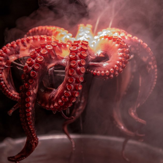 En el Mediterráneo existen tres especies de pulpo: el pulpo común (Octupus vulgaris), de hasta un metro y ocho kilos de peso; el pulpo blanco (Eledone cirrhosa), que alcanza los dos quilos pero en general es pequeño (los venerados pulpitos); y el pulpo almizclero (Eledone moschata), endémico del mare nostrum y de peso y tamaño similar al pulpo blanco. Si en un restaurante pides pulpo y te sirven la típica pata con guarnición, salteada, a la brasa o hervida, seguro que comerás pulpo común. Pero si te decantas por el pulpo con cebolla o cualquier guiso tradicional de pulpo (al menos en Cataluña), lo más seguro es que comas pulpo blanco o pulpo almizclero (este último de un aroma maloliente, a pesar de que el almizcle es la sustancia más cara de la perfumería). La cuestión es que, comas el pulpo que comas, comerás cerebro; porque sus neuronas se distribuyen a lo largo de sus brazos y tentáculos y, técnicamente, su cerebro es su cuerpo y viceversa. Por lo tanto, si no comes cerebro por principios; ni de cordero, ni de ternera, ni de cerdo... tampoco deberías comer pulpo; un animal con tres corazones capaz de sufrir y sentir como tú. Sin embargo, si bendices todo lo que te cae en el plato, desde una gamba a un chuletón, desde una lechuga a un cerebro, con el pulpo tienes un motivo añadido: es uno de los alimentos más completos y saludables que existe y la gallega, en rodajas sobre un charco de aceite bueno y con una pizca de pimentón, es un deleite insuperable.
