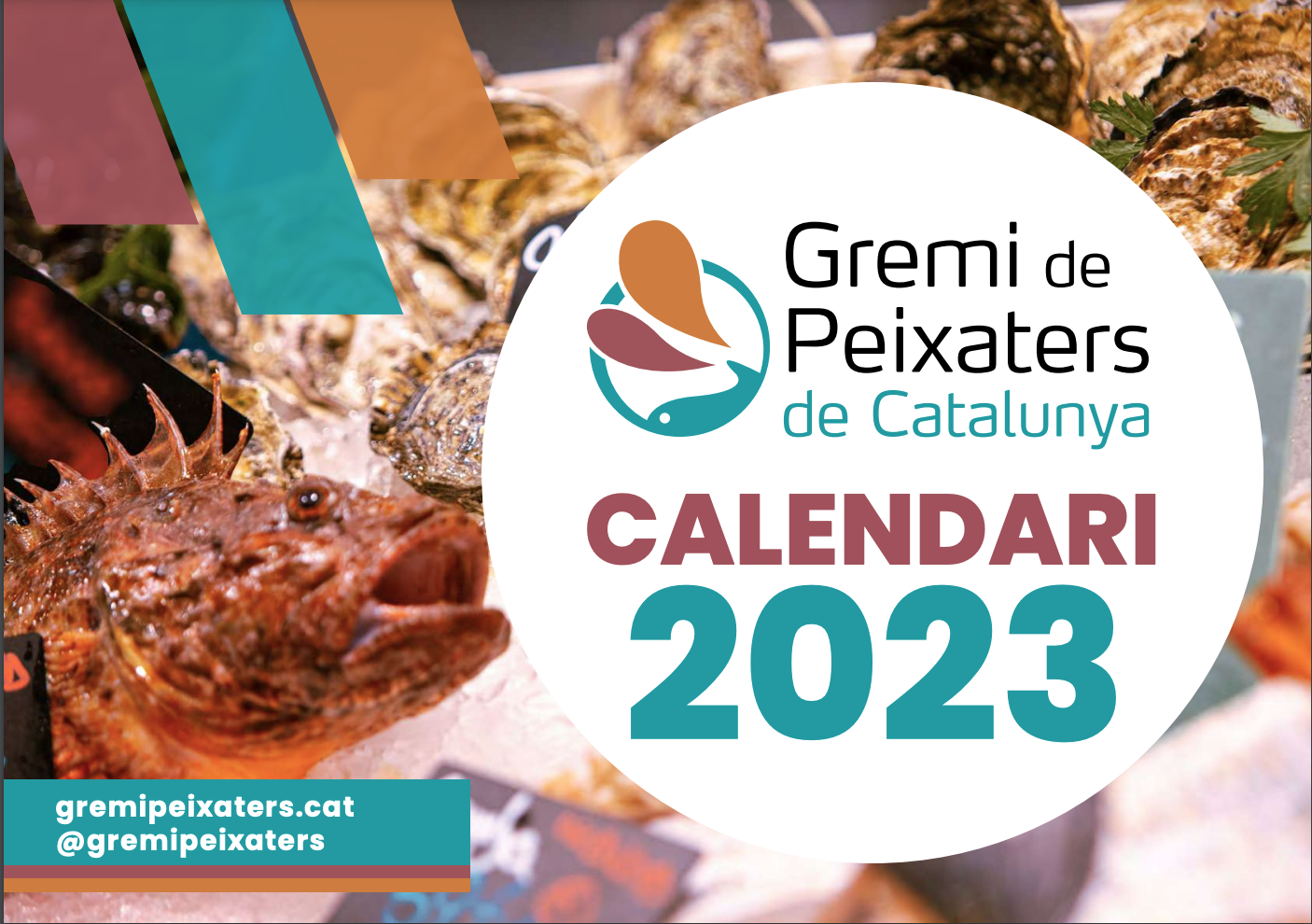Portada del calendario del 2023 publicado por el Gremio de Pescaderos de Catalunya donde se aprecia su logo distintivo / Foto: Gremio de Pescaderos de Catalunya