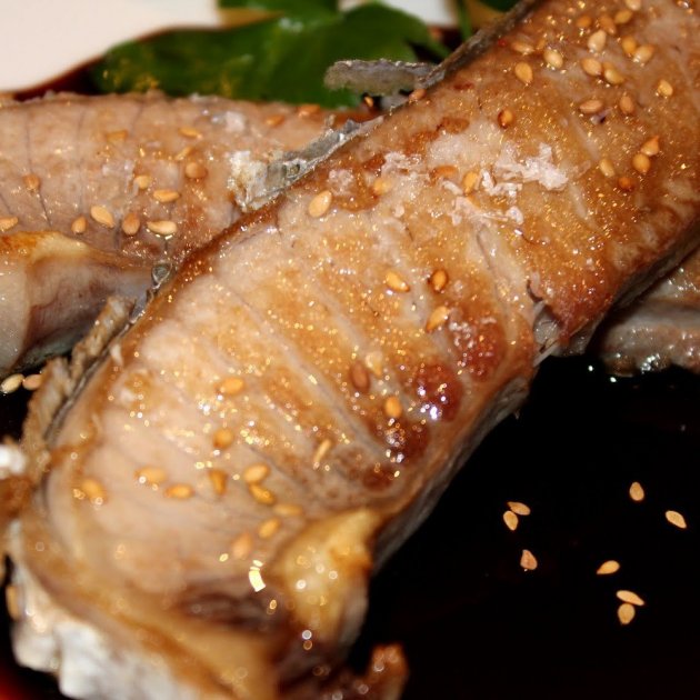 Las mismas estrías del pescado permiten que la soja penetre por dentro... mojadlo unos segundos y....