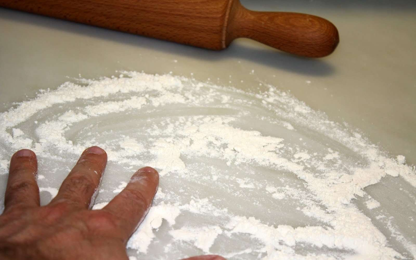 Mientras, aprovechad bien para limpiar la mesa o el mármol. Tirad una pizca de harina para que no se pegue.