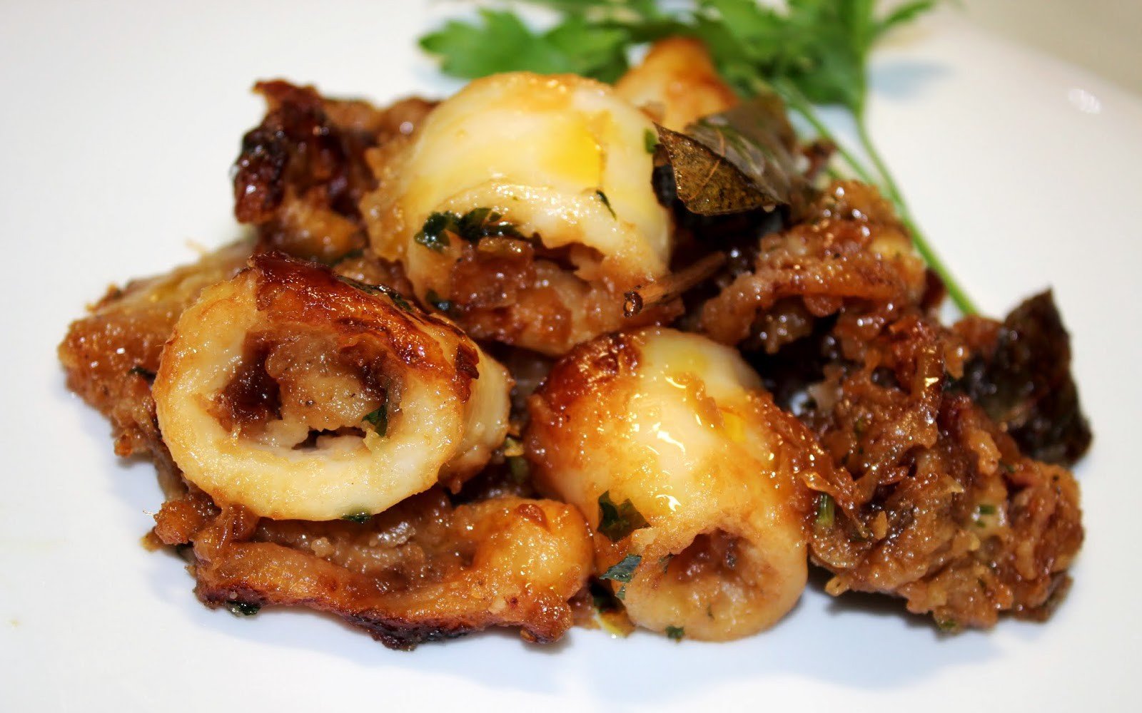 Cuándo el aceite esté bien caliente, tiramos las patas de calamar y tapamos, ya que petan un poco.